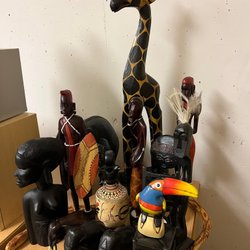 Dekorativa träfigurer i form av en elefant, flodhäst och ett lejon. Gamla. Verkar som att det är servetthållare. 60tal skulle jag gissa. Märkt Nairobi under. Kanske bara rese sovenirer eller?