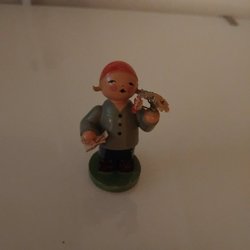 Detta är en Erzgebirge träfigur, känd som ett "blomsterbarn" (Blumenkind) från Tyskland. Dessa figurer är handgjorda samlarobjekt.