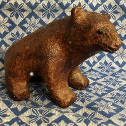 CARL ROOS. skulpturer, 2 st,björnar, Hammerdal,1900-tal.Höjd den stora 21,5 cm och lilla 6,5 cm
