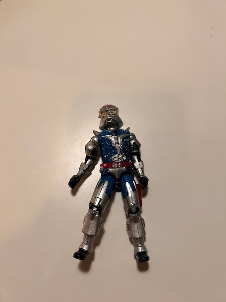 Actionfigur föreställande en robot i blått och silver med röda detaljer. Figuren har rörliga leder.