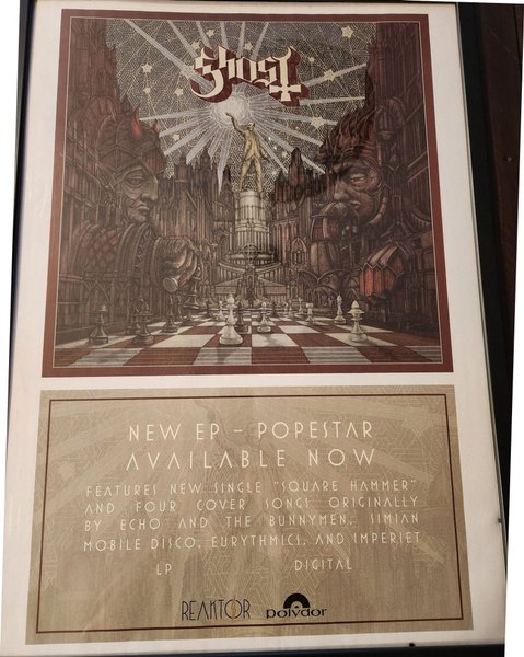 En affisch med motiv från Ghost EP - Popestar. Den har en bild med schacktema och information om EP:ns innehåll.