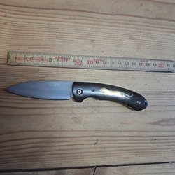 Splitterny och sylvass fällkniv med handtag i G10. Sitter riktigt fint i handen med en stabil låsmekanism som man inte kan råka komma åt medans man använder kniven.