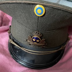 Mörkgrön mössa med två knappar framtill och en broderad symbol. Mössan har två lufthål på sidan. Från 1962. Se bilder för skick