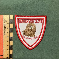 Märke med Artilleriregementets emblem. Emblemet består av en grön bakgrund med en vapensköld i mitten. Vapenskölden är blå med tre kronor i guld och en stor guldkrona ovanpå. Korslagda kanoner syns bakom skölden. Texten "ARTILLERIREGEMENTET" står runt den övre halvan av märket och "ULTIMA RATIO REGUM" runt den nedre.
