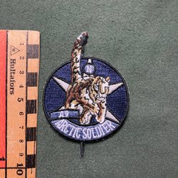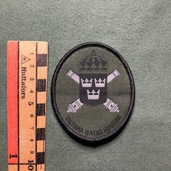 Militär tygmärke med texten Artilleri Regementet och en vapensköld i mitten.