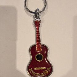 Snygg nyckelring med ett litet gitarr. Perfekt för musikälskaren!