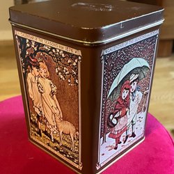 Rund kakburk med texten "Hembakat" på sidan och en kringla på locket. Tillverkad i England.