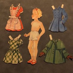 Klippdocka med Kjerstin Dellert och hennes kläder.