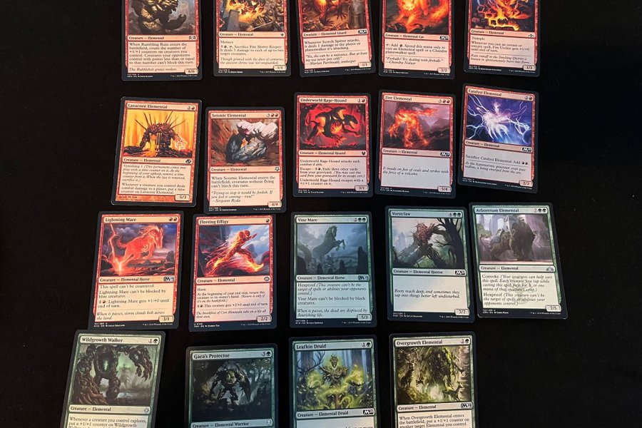 Magic The Gathering kort med elementaltema. Innehåller kort från olika utgåvor.