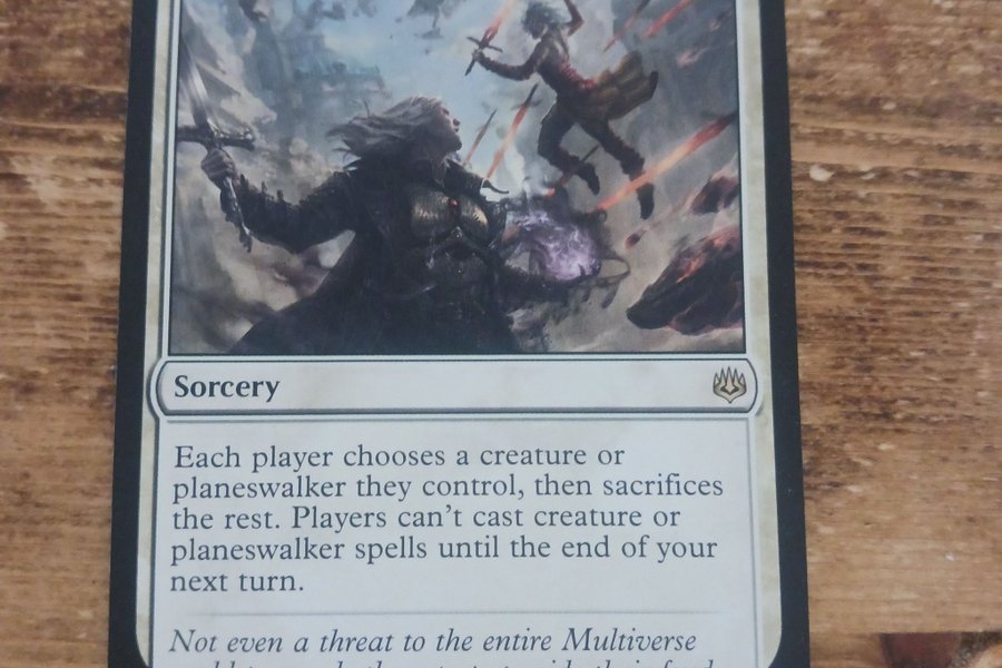 Kortet "Single Combat" från Magic the Gathering. Det är ett sorcery-kort som får varje spelare att välja en varelse eller planeswalker de kontrollerar och offra resten. Spelare kan inte spela varelse- eller planeswalker-besvärjelser förrän i slutet av sin nästa tur. Kortet är från uppsättningen WAR och har nummer 030/264.