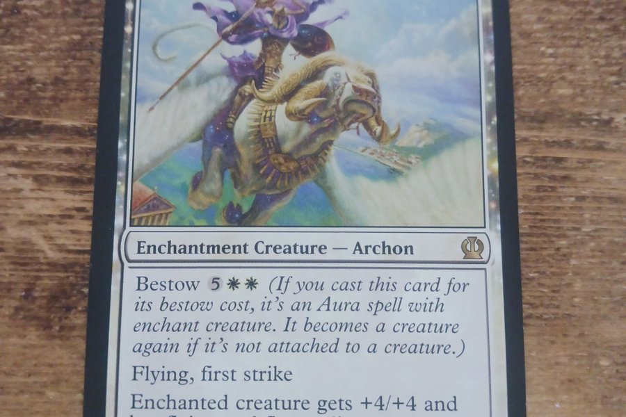 Kortet är av typen Enchantment Creature — Archon. Mana kostnaden är 3 vit vit. Bestow kostnaden är 5 vit vit. Kortet har förmågorna Flying och First Strike. Förtrollad varelse får +4/+4 och har Flying och First Strike. Kortet är illustrerat av Matt Stewart och är från 2013 Wizards of the Coast 3/249. Power/Toughness är 4/4.
