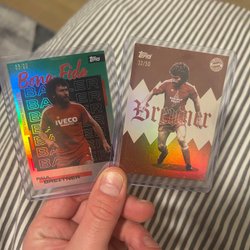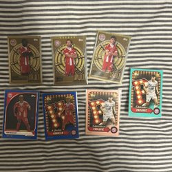 Fodboldkort med AC Milan spillere: Tijjani Reijnders, Francesco Camarda, Olivier Giroud, Marcel Desailly, Rafael Leão og Theo Hernández.