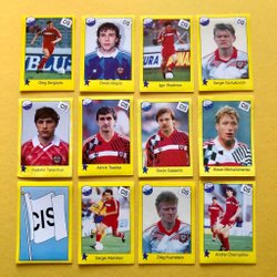 Svenska landslaget från fotbollskortsserien Fotboll 91 från Panini.