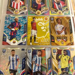 Premier League Topps fotbollskort med spelare som Nicolas Jackson, Conor Bradley, Beto, Jayden Bogle, Micky van de Ven, Jacob Murphy, Niclas Füllkrug, Lewis Cook, Tyrik Mitchell och Lewis Dunk.