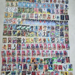 En samling fotbollskort med olika spelare och lag. Perfekt för samlare och fotbollsentusiaster.