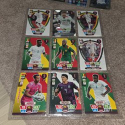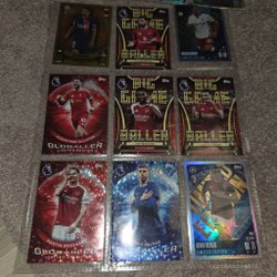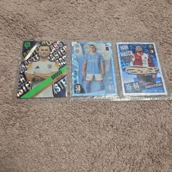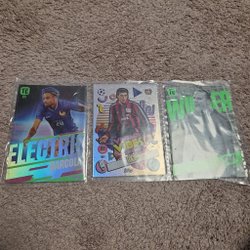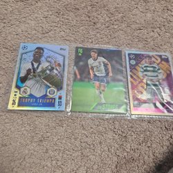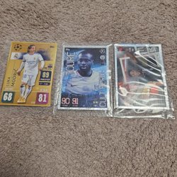 Säljer tre fotbollskort. Korten inkluderar en "Activities of the Game Limited Edition" med Ronaldo, ett "Man of the Match"-kort med Frimpong och ett "Hero"-kort med Gholizadeh.