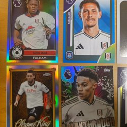 Ett parti med fotbollskort från olika serier och säsonger. Korten inkluderar spelare från olika klubbar och landslag. De finns dubbletter av en del så fråga gärna om ni vill ha.