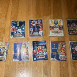 Samling av fotbollskort med olika spelare och lag. Perfekt för samlare eller fotbollsentusiaster!