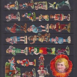 Sju gamla bokmärken med tomtar. (1704) Högsta höjd 8 cm. Ett märke med lagningar. Porto 20 kronor.