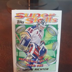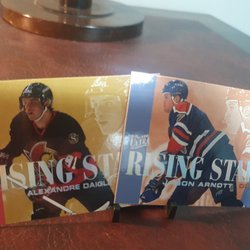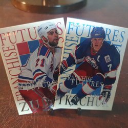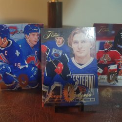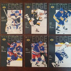 Tre hockeykort med målvakter från NHL. Inkluderar Ed Belfour (Chicago Blackhawks), Tommy Söderström (New York Islanders) och John Vanbiesbrouck (Florida Panthers). Perfekt för samlaren!