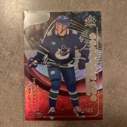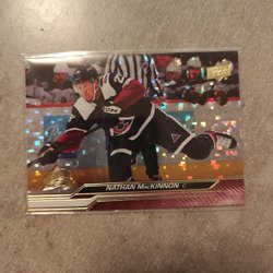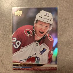 Hockeykort från Upper Deck-serien, med Nathan MacKinnon från Colorado Avalanche. Kortet är numrerat 004 av 349.