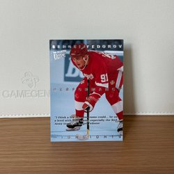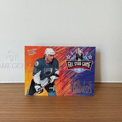 Detta är ett hockeykort föreställande Rob Blake, en framstående spelare för Los Angeles Kings. Kortet är från Upper Deck och har en unik design som framhäver spelaren i aktion. Baksidan av kortet innehåller statistik och information om Rob Blakes karriär.