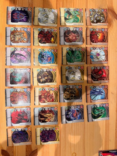 Samling av Bakugan Gate Cards. Inkluderar kort som Prism Gate, High Gate, Warm Gate och många fler.