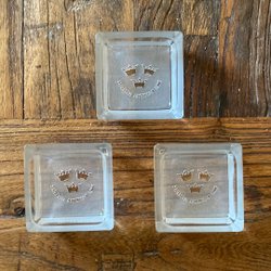 Tre askfat varav ett är märkt med "Swan Board", ett är märkt "Made in GDR" och ett är märkt "Gustavsberg Sweden". Säljes i befintligt skick