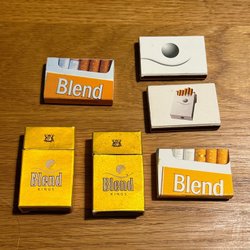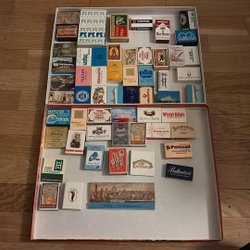 11 st tomma tändsticksaskar i mestadels hotell och restaurangreklam.