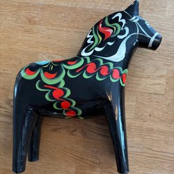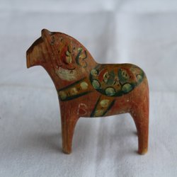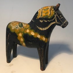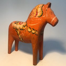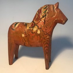 En klassisk dalahäst i trä. Märkt med 1961 "Minne från Avesta-Krylbo". Höjden är cirka 16 cm.