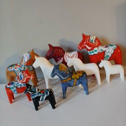 Dalahästar/prydnadshäst enligt bilder, höjder ca 18, 12 och 10cm.