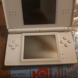 Nintendo DS med spil. Inkluderer spillene Pokemon Diamond og Mario Kart DS.