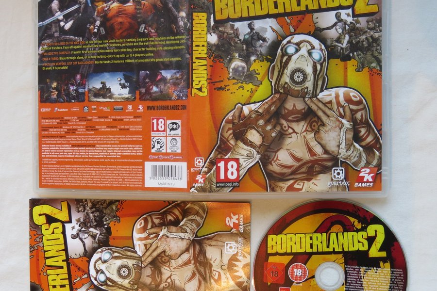 Borderlands 2 för PC. Spelet är ett "shoot and loot"-spel med frenetisk förstaperson action, loot-insamling och karaktärsbyggande rollspelselement. Spela ensam eller i co-op med upp till 4 spelare online. Innehåller miljontals procedurellt genererade vapen.