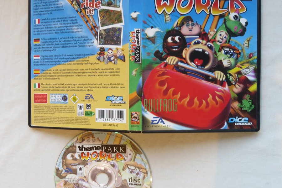 PC CD-ROM spel Theme Park World. Systemkrav: Windows 95/98-XP-kompatibel, Pentium 200MHz, 32MB RAM, 300MB hårddiskutrymme, 4x CD-ROM, 4MB grafikkort. Kräver video- och ljudkort kompatibelt med DirectX 6.1 (medföljer på CD). Direct3D kräver en 3D-accelerator med fullständigt Direct3D-drivrutinsstöd. Onlinefunktioner kräver en befintlig internetanslutning (spelare ansvarar för alla tillämpliga internetavgifter).