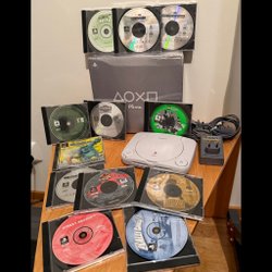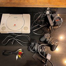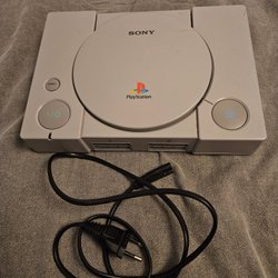 Komplett Sony Playstation med två handkontroller, minneskort och alla kablar som behövs.