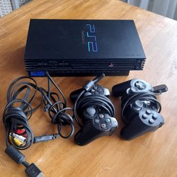 Säljer en fungerande Playstation 2 konsol med strömkabel, AV-kabel och ett minneskort. Skickar även med två st otestade spel. Fodralen saknar tyvärr omslag.
