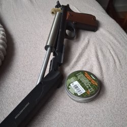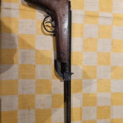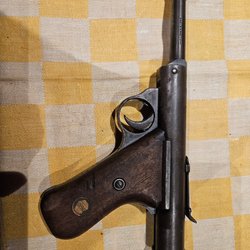 Luftpistol med trähandtag. Metallkonstruktion.