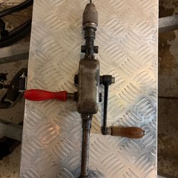 En handborr med trähandtag. Perfekt för diverse projekt.