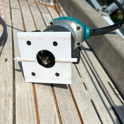 Fräsjigg för att fördjupa spår i teakdäcket på båten. Anpassad för spår 3,7 mm.