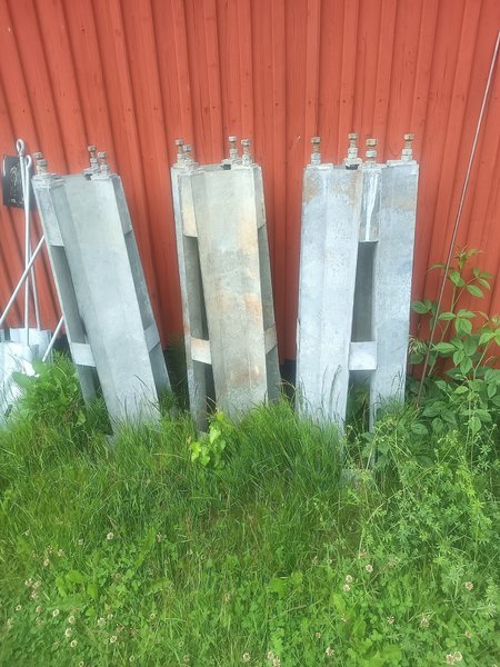Stolpfundament i metall, galvaniserade, till t.ex. flaggstång. Måste hämtas i Glava i Arvika kommun, alternativt kan de levereras mot ersättning enligt överenskommelse.