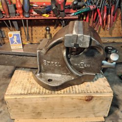 Ett skruvstäd säljes. Kläms fast i bänkskivor upp till 5cm tjocka Gap 5 cm.