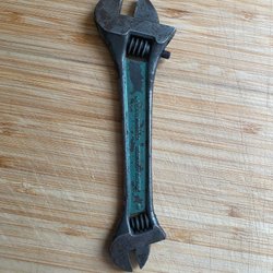 Äldre skiftnyckel i metall.