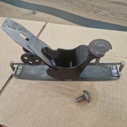 Handhyvel med svart handtag och metallbas. Verktyget har en justerbar klinga.