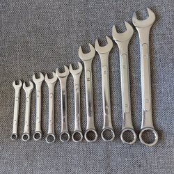 Ringnycklar i olika storlekar. Storlekarna är 7, 10, 11, 13, 14, 15, 17, 19, 21 och 22.