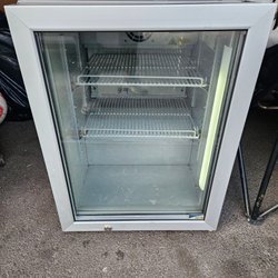 Ismaskin från Mega Ice. Enheten är vit med en svart logotyp och kontrollpanel på ovansidan. Kontrollpanelen har en strömknapp och indikatorlampor för "ADD WATER" och "ICE FULL". Maskinen har ett genomskinligt lock.