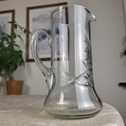 Stor hög kanna/karaff i klarglas. Designade av Ingeborg Lundin för Orrefors.