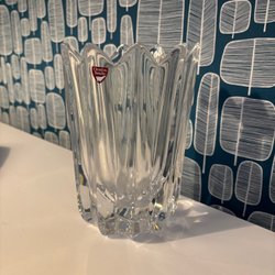 Säljer en vacker och tidlös vas från Orrefors, i den största storleken på 25 cm. Vasen är tillverkad i klart kristallglas och har en karakteristisk lyster.