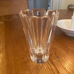 En glasvas från Orrefors, tillverkad i Sverige.