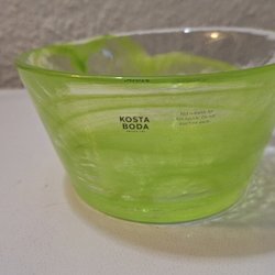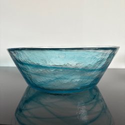Från kosta Boda minne. En fin glasskål med blåa detaljer. Höjd 9 cm, 25 cm i diameter. Som ny