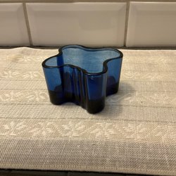 Blå vas med bubblor design Erik Höglund Boda glasbruk 60- tal